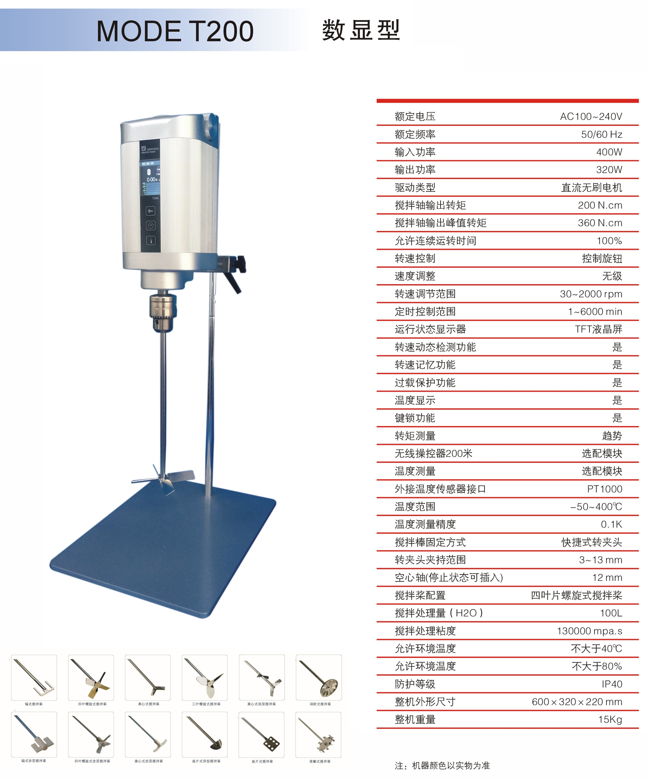 T200+PLUS數(shù)顯型實驗室電動攪拌機